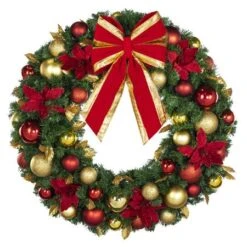 36″ Unlit Decorated Wreath – Elegant Poinsettia – Bow Option Available