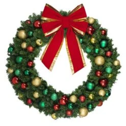 36″ Unlit Decorated Wreath – Traditional Décor – Bow Option Available